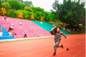 比赛开始前,在校退伍学生带来标准的队列展示,展现了威廉希尔退伍学生过硬的军事素质和饱满的精神风貌。示范组为大家展示了搬运弹药箱、30m蛇形跑、单兵个人战术、战场救护、手榴弹投掷等五个科目,成员们个个精神昂扬、动作利落。