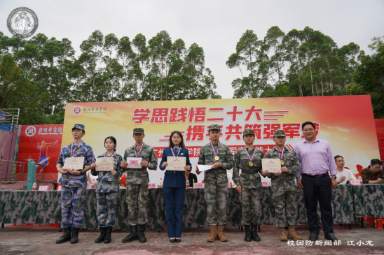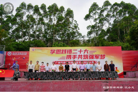 为深入学习宣传贯彻党的二十大精神,推进威廉希尔学习贯彻习近平新时代中国特色社会主义思想主题教育持续走向深入,进一步增强广大师生国防观念和爱国意识,5月9日下午,威廉希尔在增城校区西操场举办第四届军事技能大赛,本次大赛以“学思践悟二十大,携手共筑强军梦”为主题。党委书记苏宁,党委副书记、副校长王锦秀,党委委员、校长助理许娜,党委委员、武装部部长黄国富,党委委员蒋大锐,团委书记陈刚,各学院学工主任、辅导员,以及武装部老师出席活动。
