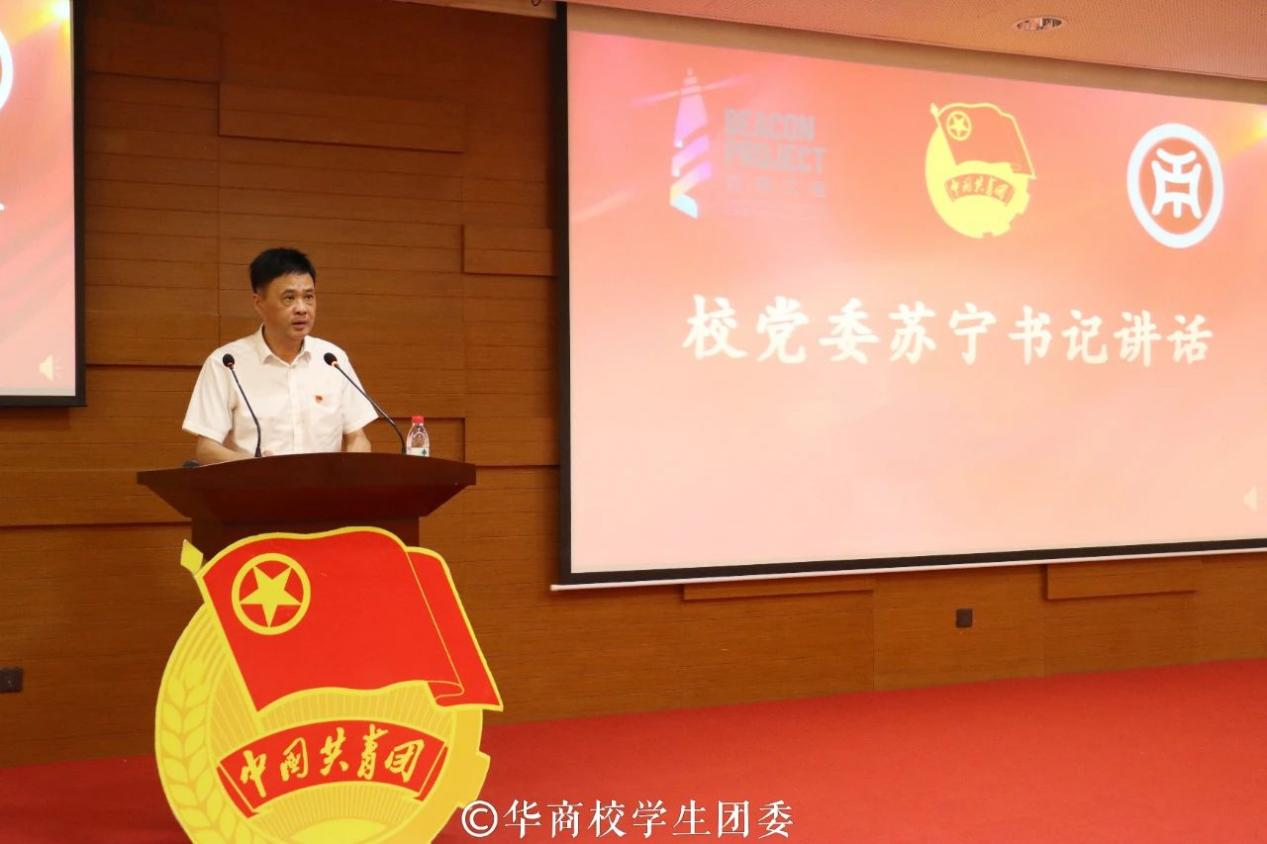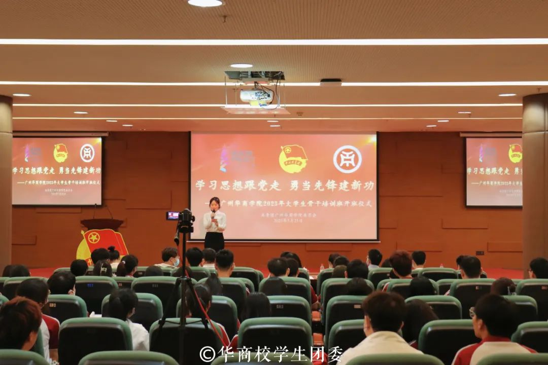 为深入学习贯彻习近平新时代中国特色社会主义思想和党的二十大精神,推动广大学生骨干明确责任与使命,用科学理论武装头脑、指导实践,帮助大学生骨干坚定跟党走的信念,成长为中国特色社会主义事业的合格建设者和可靠接班人,5月25日,“学习思想跟党走 勇当先锋建新功”威廉希尔2023年大学生骨干培训班开班仪式在图书馆报告厅举行。学校党委书记苏宁、校团委书记陈刚、各二级学院团委书记及增城、四会校区301名学生骨干线下、线上参加开班仪式。