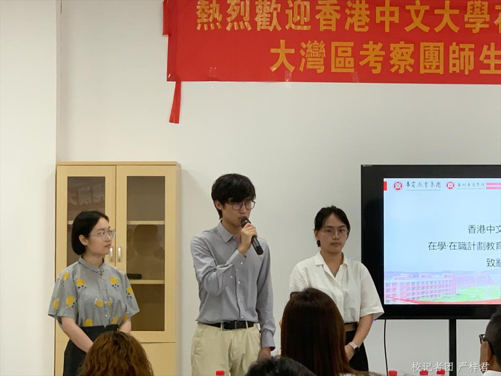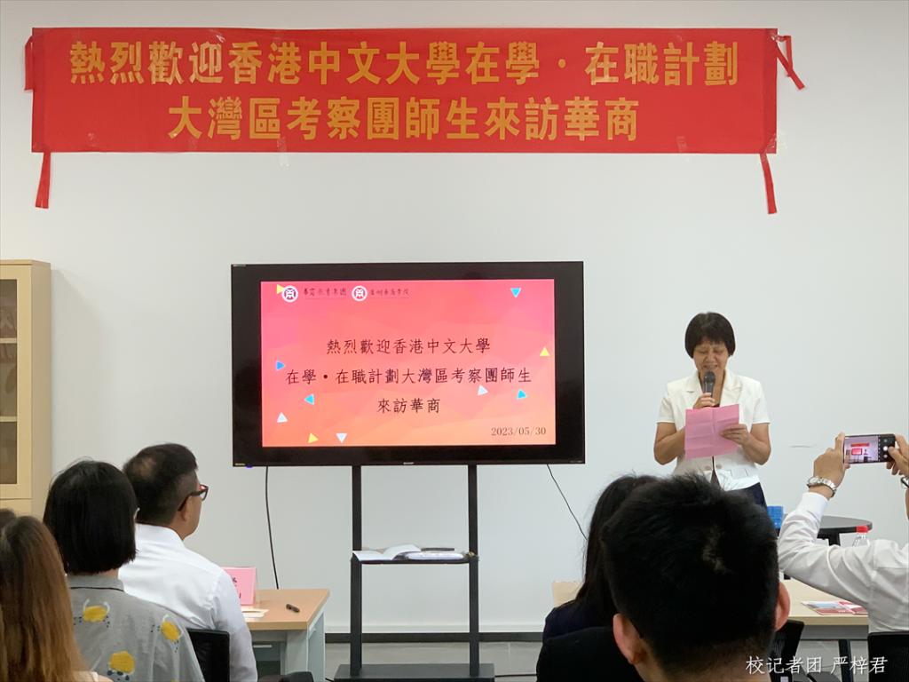 广州华商职业学院副校长余家军向港中文考察团分享粤港澳大湾区创新创业发展方向。他提到,大湾区政府高度重视青年的创新创业,华商学院创新创业孵化基地得到广州市政府的大力支持,表明本校学生在创新创业方面具有一定特色和优势。同时,学校为支持学生创新创业,已开设具有广东省一流本科水平的创业管理课程,并出台一系列政策支持学生创新创业,鼓励学生不仅注重学科竞赛,还要走出校门,增强实践能力,展现大湾区学生的风采。余家军副校长表示,港中文的学生拥有不同的文化背景,对市场的理解各不相同,他相信,在港中文学生进一步了解大湾区文化后,利用语言优势、地理优势,结合港中文优越的教学资源,作为个体必能把握大湾区,放眼全球。