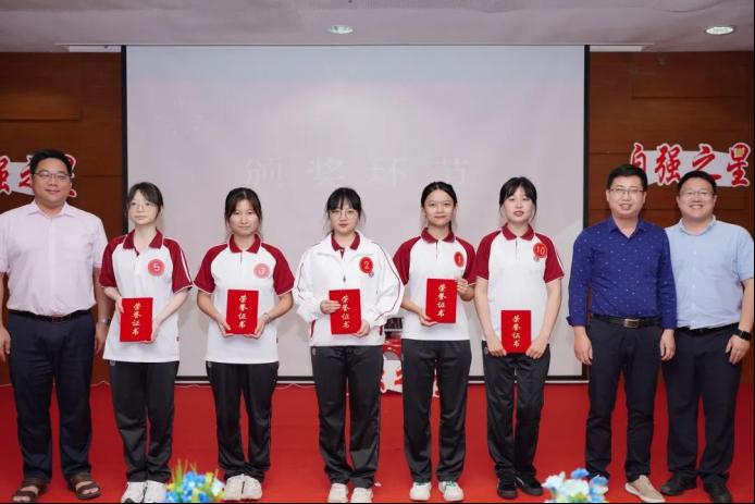 结合三个环节的综合成绩,本届“自强之星”评选活动最终决出一等奖一名,二等奖两名,三等奖三名,优胜奖五名。评委老师们为获奖的优秀学子颁奖。