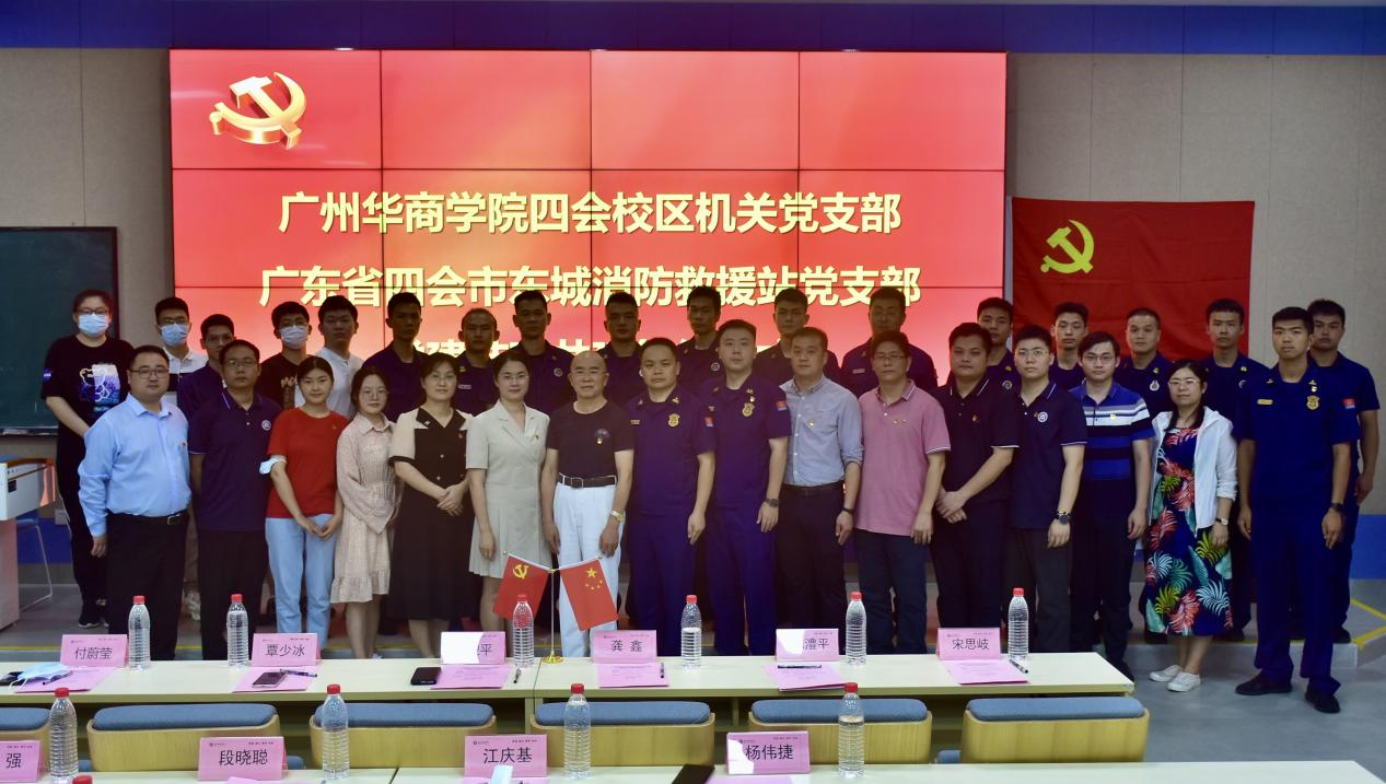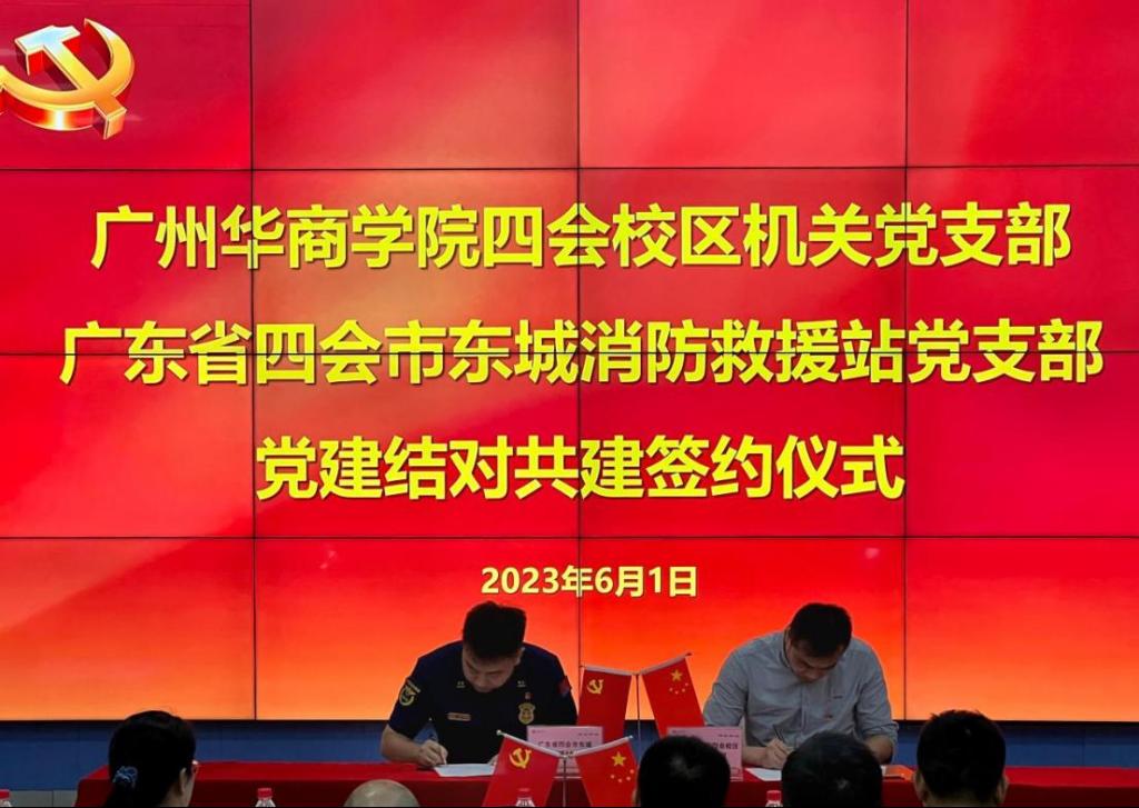 党建共建聚合力,结对互助促发展。为深入推进学习贯彻习近平新时代中国特色社会主义思想主题教育,2023年6月1日下午,在学校党委的指导下,四会校区机关党支部与四会市东城消防救援站党支部举行党建结对共建签约仪式。威廉希尔四会校区党委书记王卫平、副书记覃少冰、委员付蔚莹、段晓聪、江庆基,四会市东城消防救援站党支部书记宋思岐、教导员龚鑫、副站长陈澧平等领导出席本次活动,四会校区各党支部书记、支委、各支部党员代表、四会市消防救援大队指战员代表共同参加本次活动。