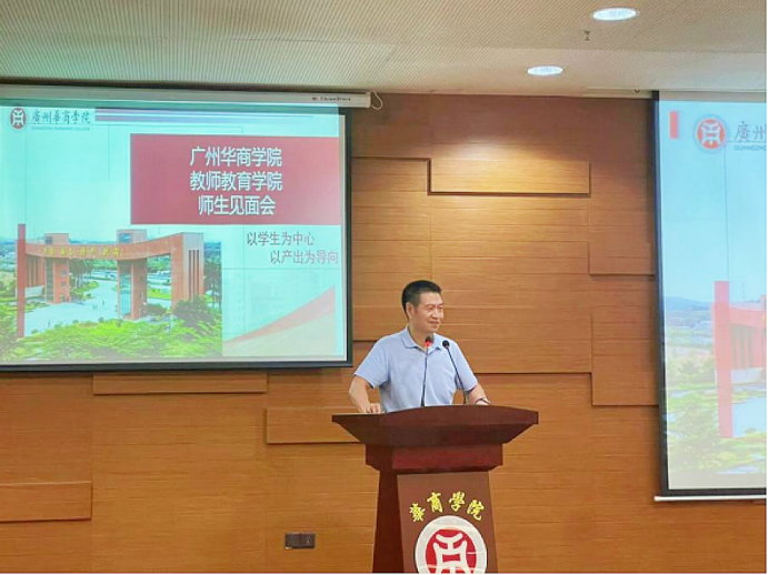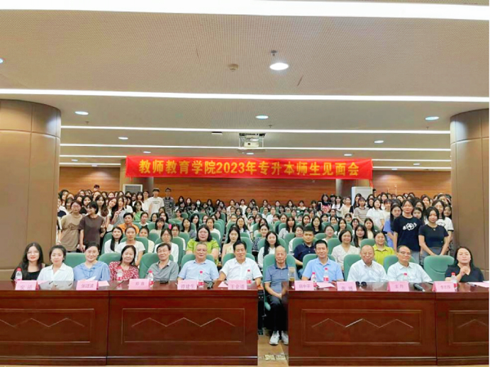 2023年9月5日15时,威廉希尔教师教育学院在增城校区图书馆报告厅举行2023年专升本师生见面会。出席本次师生见面会的领导嘉宾有:教师教育学院名誉院长扈中平教授、教师教育学院院长王金道教授、副院长张博教授、副院长谭建生教授、小学教育系主任王符教授、小学教育系专业负责人李志厚教授、院长助理安洁博士、三办一中心主任、各系部主任、新生辅导员及班主任、学前教育系全体教师。会议由学前教育系副主任张会会老师主持。