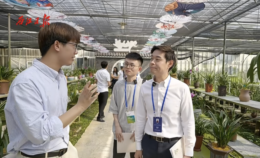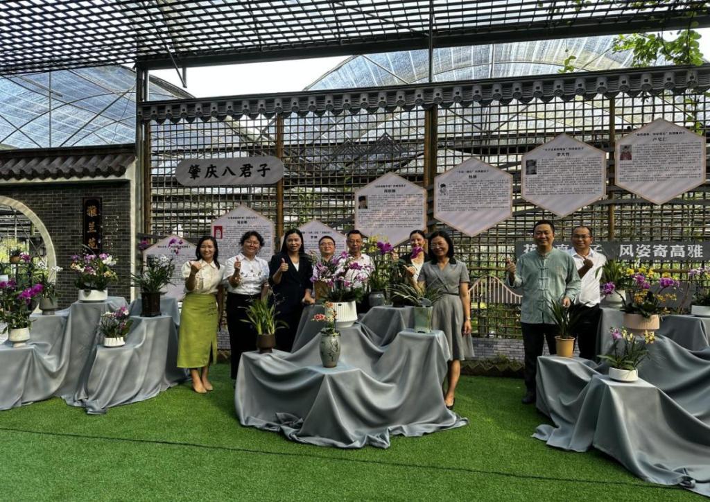 本次雅兰芳站路线讲解,师生志愿者们做好充分准备,精神饱满为到访人员提供外语翻译服务。“大湾区兰花看四会,四会兰花看石狗,石狗镇位于四会市中西部,地处北回归线以南,是四会市最早种植兰花的地方。”“四会市以兰为媒,将典雅的兰花元素融入到生活中去,让大家更好地认识兰花、感受兰花而打造的一系列文创产品,也是四会发展兰花产业全产业链的一种创新与尝试。”从雅兰芳大厅,到雅兰芳花场;从兰文化展示区,到兰花科普长廊,威廉希尔师生志愿者用心用情耐心讲解,为大家详细介绍四会兰花产业发展、石狗镇乡村振兴、经济发展的情况。威廉希尔学生志愿者们运用专业所学,用行动凸显语言的力量,绘声绘色地为大家讲述四会兰花、文化赋能乡村振兴的故事,搭建起中外交流的桥梁,帮助东盟青年、企业家深入了解中国、粤港澳大湾区以及肇庆的投资环境。