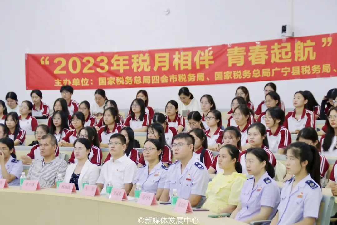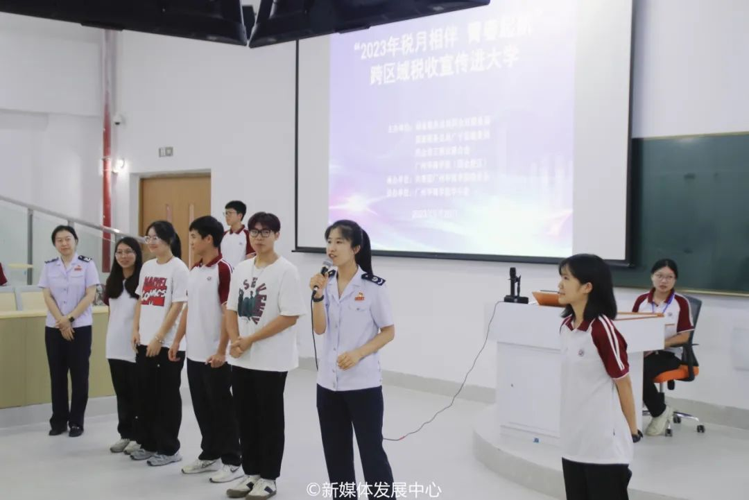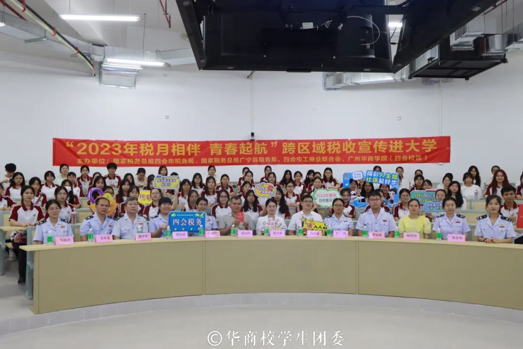 为助力大学生走稳走好创业就业第一步,推进校园税收普法教育和学生税收实践相融合,9月20日,国家税务总局四会市税务局、国家税务总局广宁县税务局、四会市工商业联合会联合威廉希尔开展的2023年“税月相伴 青春起航”跨区域税收宣传进大学活动顺利举办。威廉希尔校长助理、四会校区党委副书记、管委会常务副主任覃少冰,四会市税务局党委委员、副局长杨炳歆,四会市工商联会员部部长梁金洪,广宁县税务局第一税务分局局长王培以及税务局、工商联、威廉希尔(四会校区)相关工作人员参加本次活动。