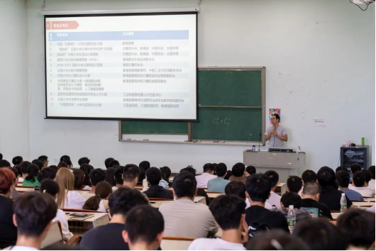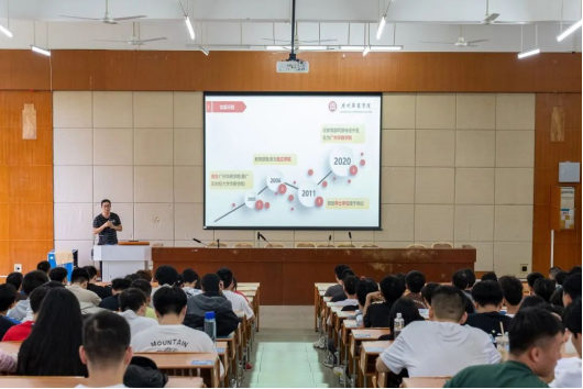 黄主任从学校概况、数据科学学院概况、计算机科学与技术专业概况、课程设置、就业形势等方面进行介绍,详细介绍了计算机科学与技术专业的人才培养方案,课程建设情况,实践教学的条件,学科竞赛,考取证书,以及课程体系等方面的信息,通过思维导图重点介绍了所有课程的先修与后修的关系,勉励同学们强化自身学科知识,深入打磨专业技术,激励同学们树立远大的理想,确定学习目标,制定适合自己的学习计划,努力学习。