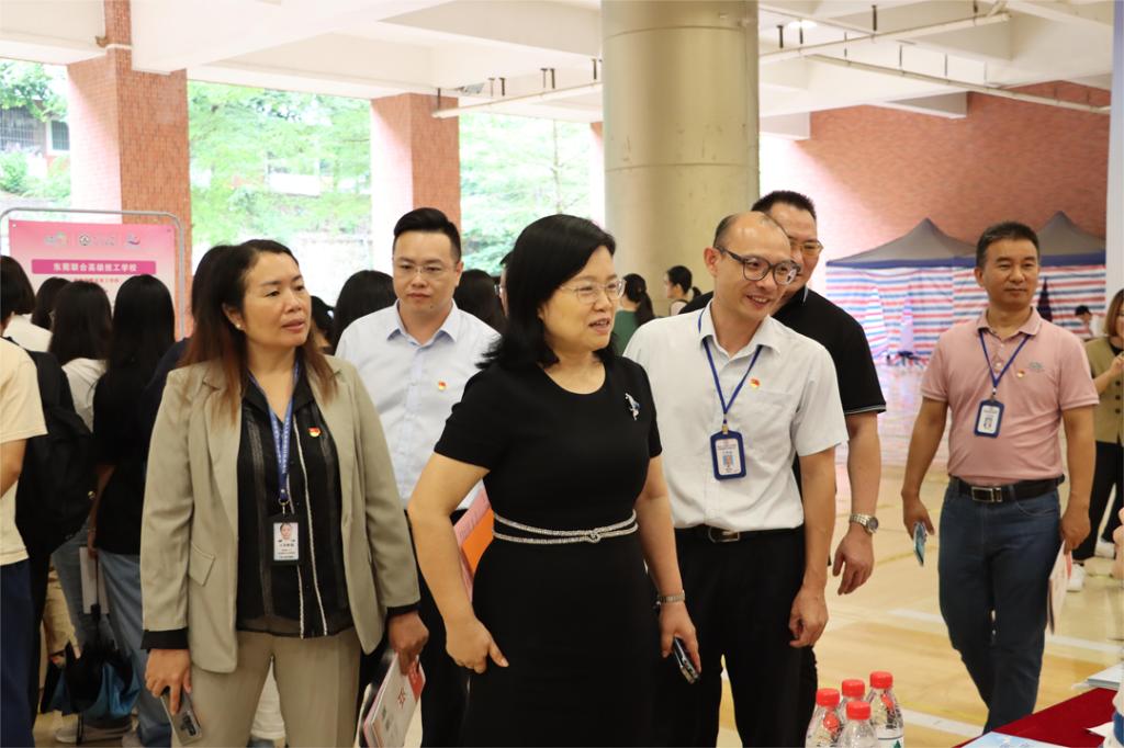 招聘会上,威廉希尔党委书记陈玉欢、校长助理黄伟新、就业指导中心主任曾龙威等与东莞市人社局职业介绍服务中心副主任赖润坤一行莅临现场关切指导,与招聘企业和应聘学子亲切交谈。此次招聘会共有20家东莞企业参会,为威廉希尔毕业生提供就业岗位超过100个,总需求人数超540人,现场入场人次超600人次,咨询和服务人次数506次,收到简历数414份,达成就业意向111人,预录用人数83人。