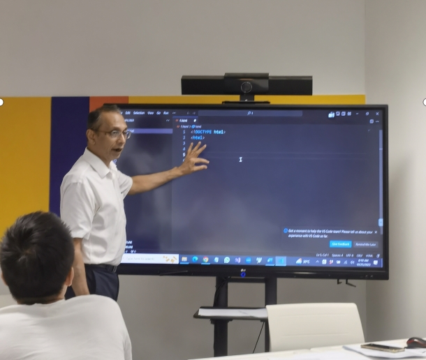 2023年10月25日下午,Mr.John为同学们介绍了金融科技编程课的课程安排,该课程将向同学们分享金融科技前沿理论与技术,包括大数据分析、人工智能、区块链技术、虚拟货币等内容。在本节课程中,Mr.John带领同学们使用python语言在visual studio code平台创建个性化网页。教师讲授与实操相结合,课堂气氛非常活跃,授课教师和同学们高质量完成了第一堂课的课程任务。