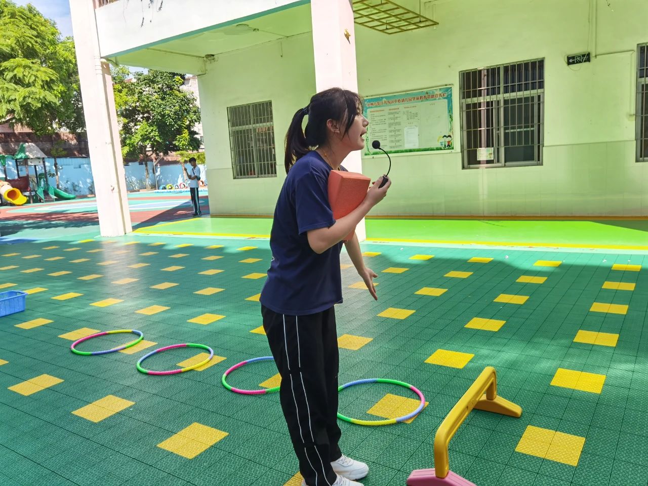 活动开展前,化州市鉴江街道中心幼儿园陈妍宇主任对威廉希尔实习教师们进行了系统的培训,简单介绍了茂名市体育课题《幼儿园快乐体育课程创新实践》的开展情况及初步成效,着重讲解了幼儿园体育活动开展的意义、幼儿各年龄段的身体发育特点、体育课程设计和实施等。