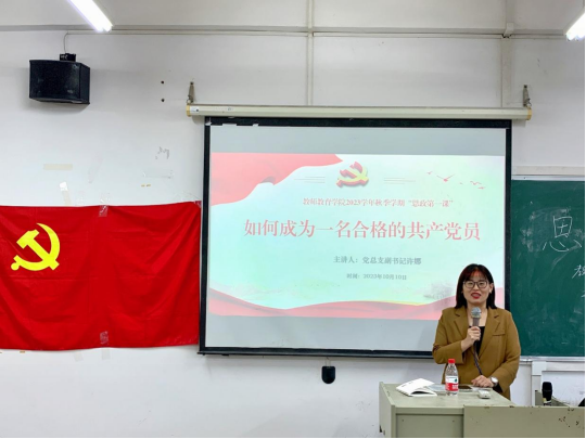 许娜老师以“如何成为一名合格的共产党员”为题进行授课。百年风华正茂,胸怀千秋伟业。合格的党员应向祖国和党致以青春的礼赞,坚定不移听党话、跟党走,努力成为堪当民族复兴大任的时代新人,将个人奋斗融入中华民族伟大复兴的时代洪流中,真正做到与党同向、与民同心、与时同行,为全面建设社会主义现代化国家而团结奋斗。