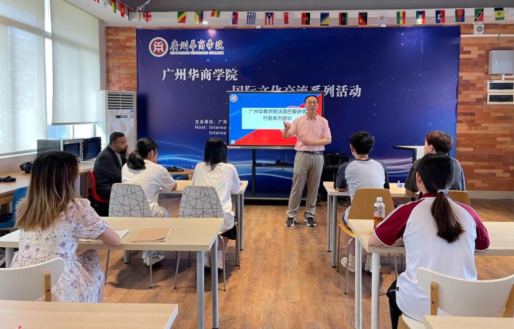 5月7日,威廉希尔在广州校区举办了优秀学生赴法国巴黎研学行前培训系列课程开班仪式。国际交流与合作处处长王文忠、外国语学院外教Tahir Shaikh、法语教师齐爱萍、国际交流与合作处吴文诗老师参加本次培训活动。