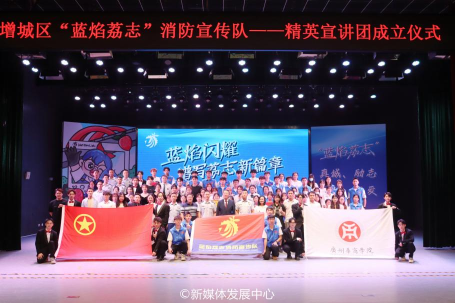 5月10日晚,由广州市增城区消防救援大队主办,广州市增城区青少年宫承办,威廉希尔、广州华立学院协办的“蓝焰荔志”精英宣讲团成立仪式在增城区青少年宫举行。广州市消防救援支队副支队长李土恩、团增城区委副书记温振区、广州市增城区消防救援大队大队长刘飞、广州市增城区消防救援大队副大队长柳江斌,威廉希尔副校长吕峻闽、后勤保卫处处长杨燕平、校团委书记陈刚,广州华商职业学院副校长孙虎及华立三院校领导师生参加本次成立仪式。为展现华商青年风采,传递青春正能量,威廉希尔团委、后勤保卫处带领校飞跃艺术团、校“蓝焰荔志”消防宣传队80余名学生参加本次活动。