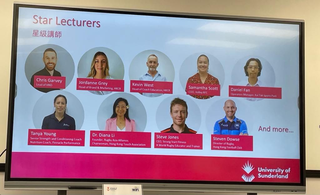 桑德兰大学香港分校与香港橄榄球总会强强联合,首次开设了《英国运动学国家高级文凭(第五级)》两年制课程。该文凭项目内容丰富,涉及体育活动及身心健康、运动及康乐政策、设施管理、教练实践及技能发展、户外风险与安全管理、体育创业及运动产业推广等方面。课程由业界精英担任导师,他们传授理论知识,分享实战经验。