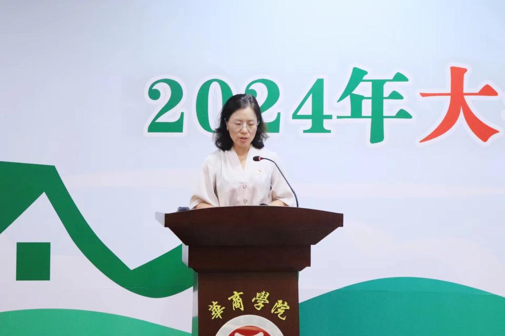 实践队学生代表李煜贤同学发言。他向给予实践队全体同学关心、支持、帮助的各位领导和老师们,表示最崇高的敬意和最诚挚的谢意。他号召实践队全体同学,要做到以下三点;一是带着华商独有的精神特质出发,砥砺前行;二是带着新时代青年的责任担当出发,积极作为;三是带着必将做出实际成果的决心出发,勇担使命。在乡村振兴的大舞台上建功立业,争当“百千万工程”建设的排头兵和生力军。