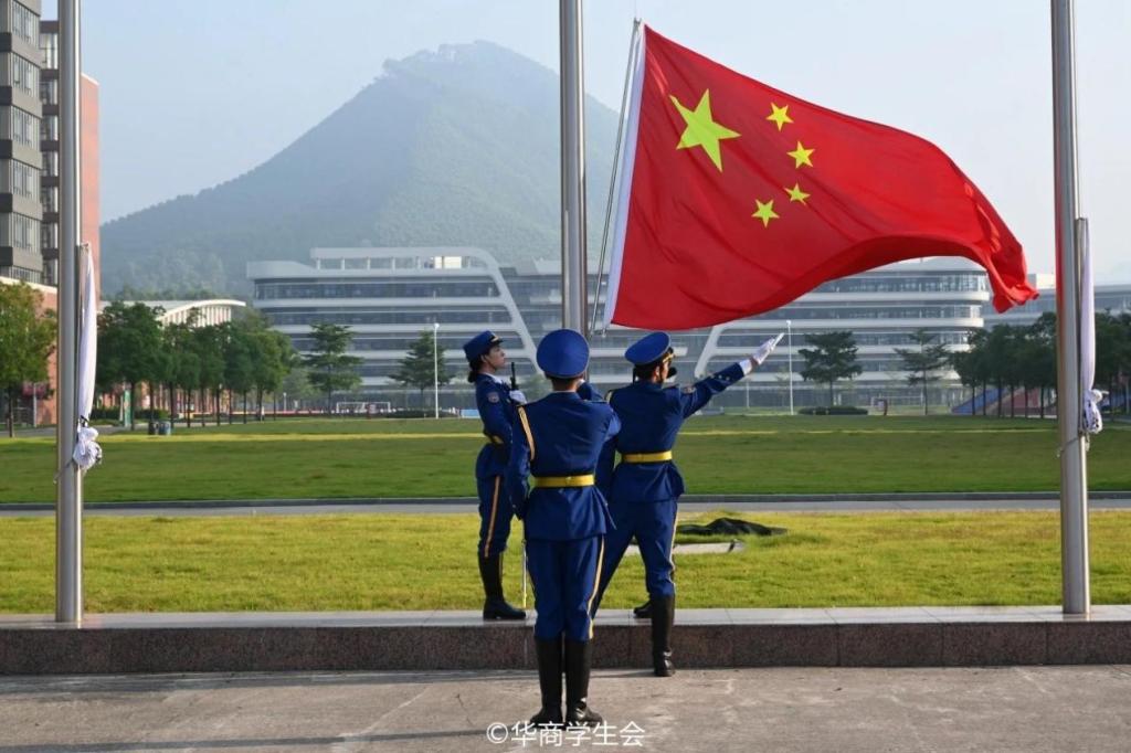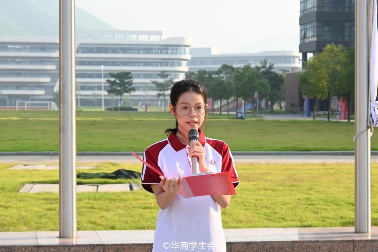 升旗仪式后,两校区学生代表在国旗下作表态发言。广州校区学生代表宋泓毅同学发言,他表示将在新学期勤奋学习,积极实践,敢于挑战,用真才实学发光发热,用创新创造贡献国家,在学习和工作中锻炼自我,以实际行动为学校建校20周年校庆和迎接本科合格评估贡献青春力量。肇庆校区学生代表卓思妍表示,将继续以习近平新时代中国特色社会主义思想为指引,在党的二十届三中全会精神的鼓舞下,锐意进取,拼搏进取。她向华商学子发出三点号召:一、专注学习,积极实践;二、强化自律,培养品格;三、关注创新,勇于探索。