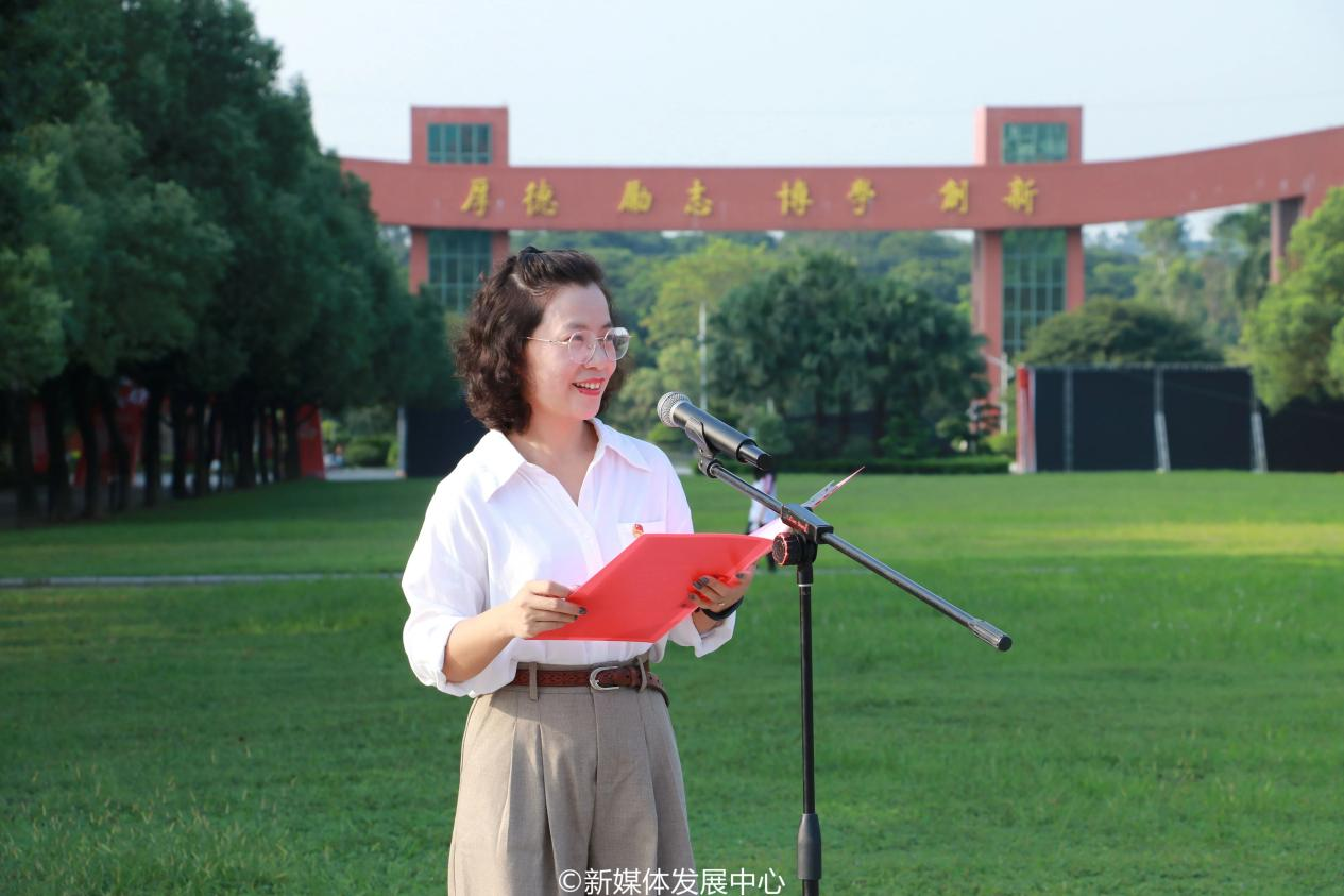 肇庆校区党委书记苏宁讲话。他要求大家时刻谨记时代赋予的使命责任,树立高远志向和奋斗目标。在新学期开启逐梦新征程之际,围绕“初心、品格、力量”三个关键词,提出三点期望:一、以“挺膺担当”之初心,坚定理想信念;二、以“强国有我”之品格,实现全面发展;三、以“顽强拼搏”之力量,不断挑战自我。