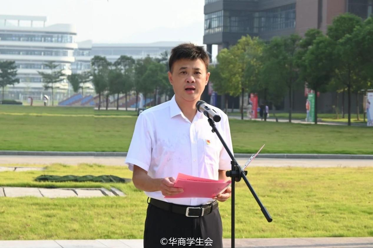 学校党委书记陈玉欢作动员讲话。她代表学校党委向辛苦耕耘的全体教职工表示感谢;向全体同学致以最诚挚的问候。她指出,今年上半年,学校聚焦“强基固本、提质增效,开创学校高质量发展新局面”工作主题,团结带领各级领导干部和全体教职工牢记使命、奋进担当,各项事业实现高质量跨越式发展。她特别提到华商青年的历史和使命,鼓励同学们不断成长成才,为学校高质量发展展现新担当、贡献新力量。陈书记向在场师生提出三点期望:一是立志高远,厚植家国情怀。坚定中国特色社会主义共同理想,在中国式现代化时代新篇中明确人生目标,实现人生价值。二是坚持创新创造,涵养进取品格。要以创新意识和奋斗意识为引领,积极主动适应新时代,主动加快知识更新、优化知识结构、拓宽眼界和视野。三是笃学力行,练就过硬本领。在学习和生活中夯实基础,提升各方面能力和素质。坚持知行合一,学以致用,做勇担时代使命的追梦者。