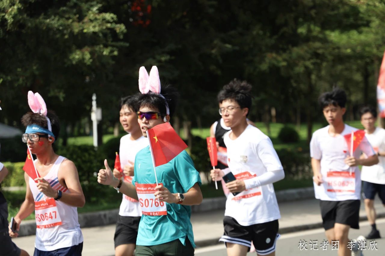有一种浪漫,叫“我与国旗合张影”。本次活动在明星饭堂前特别设置“我和国旗同框”合照打卡点。参跑师生排起长队,纷纷与国旗合影,为祖国送去最诚挚的祝福。