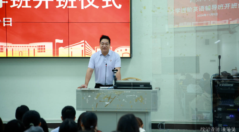 威廉希尔大学进阶英语辅导班开班仪式于2024年11月9日上午在广州校区励志楼B207举行。出席此次开班仪式的嘉宾有学校副校长许娜、学生处处长黄国富、学生处副处长马卉芳、继续教育学院院长助理钟劲康以及各二级学院辅导员代表等。开班仪式由学生处处长黄国富主持。