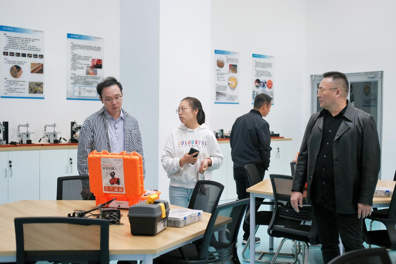 第二站,曾龙威处长一行参观了昆明冶金高等专科学校的智创实践教学基地,包括AI智慧学习实验室、智能机器人创新实验室、VR虚拟实验室等多个创新实验室,深入了解了该校在创新教育和实践教学方面的成果。在座谈交流中,双方就人才培养、就业创业服务等方面进行了深入探讨,重点讨论了创新创业体制机制、师资队伍建设、学校建设“一站式”就业创业服务等情况,为威廉希尔就业创业工作提供了新的思路和方法。