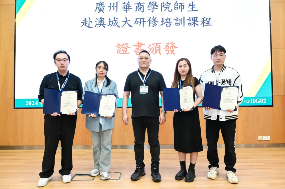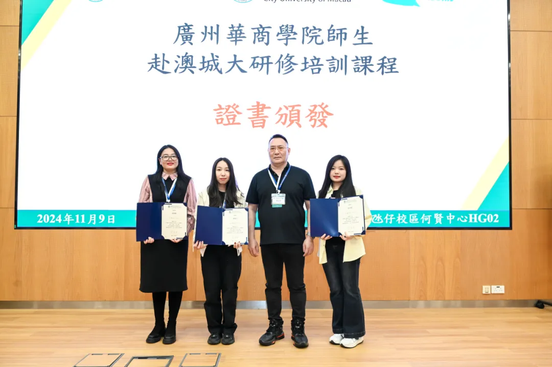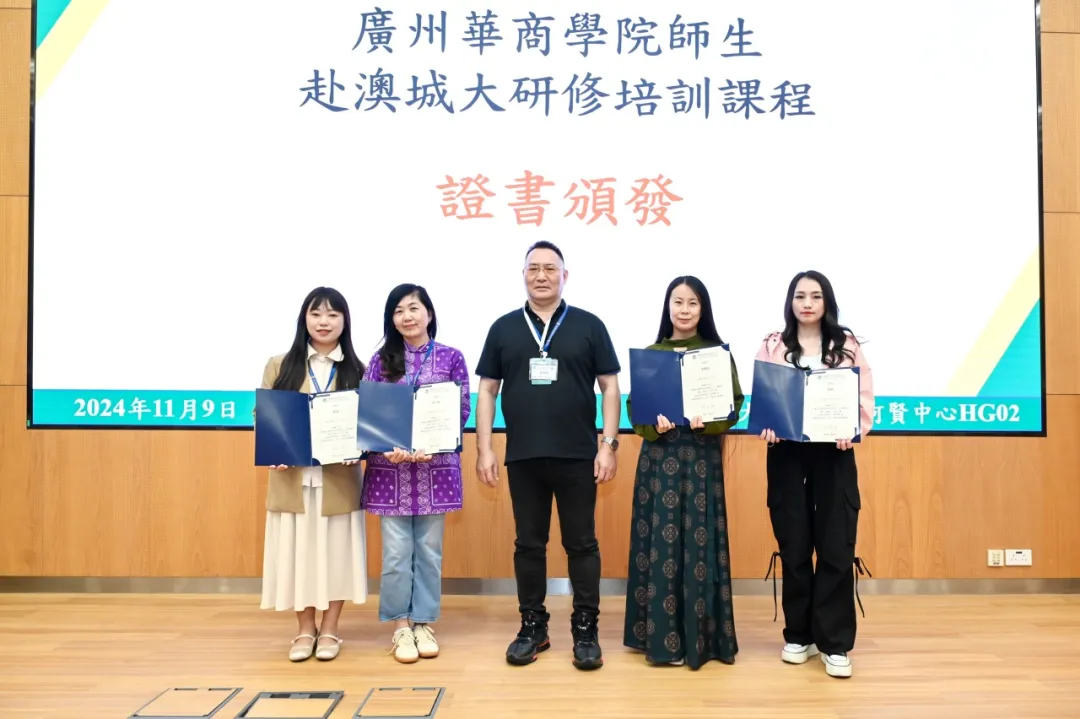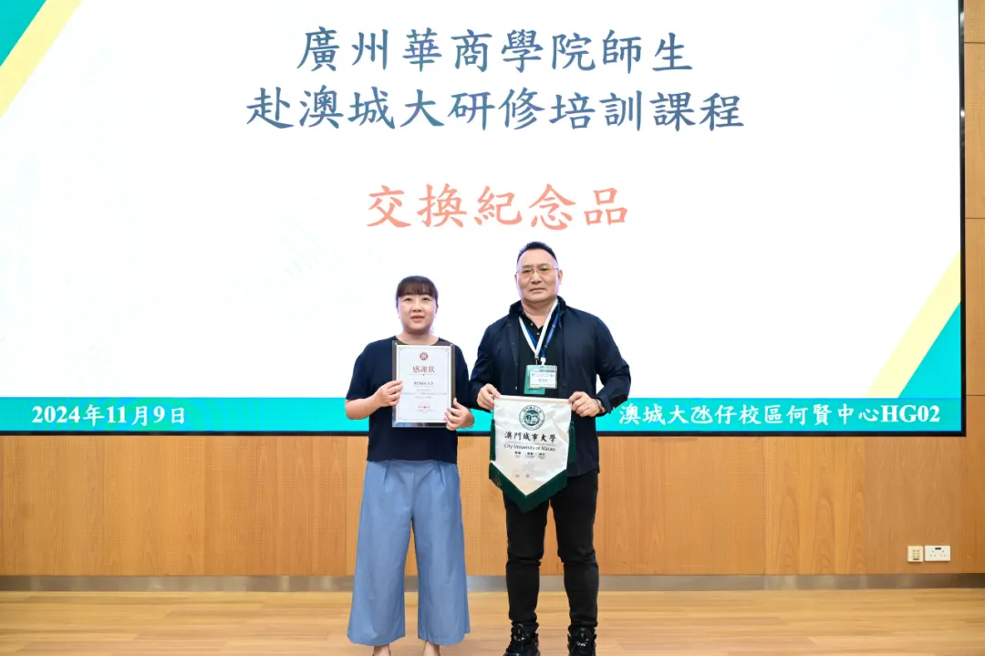 讲座结束后,澳门城市大学国际培训与测试中心为研学团队师生颁发课程结业证书,威廉希尔与澳门城市大学国际培训与测试中心交换纪念品。