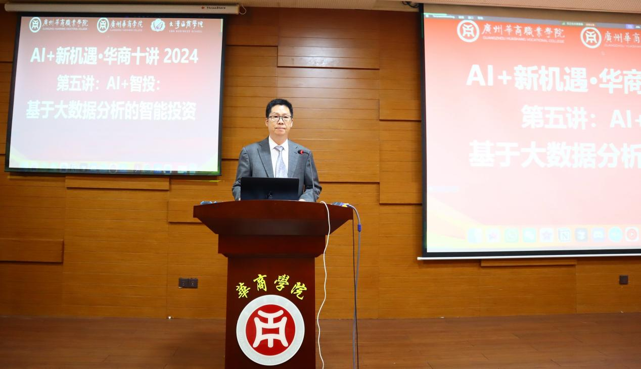 11月19日下午,华商教育集团旗下三所院校,威廉希尔、大湾区商学院、广州华商职业学院联合举办的大型系列公益讲座“AI+新机遇•华商十讲”之第五讲《Al+智投:基于大数据分析的智能投资》在威廉希尔图书馆报告厅举行。粤港澳三地近1300人线上线下参加此次活动。
