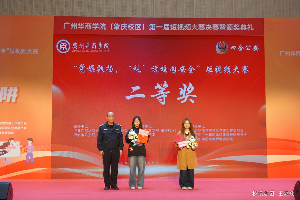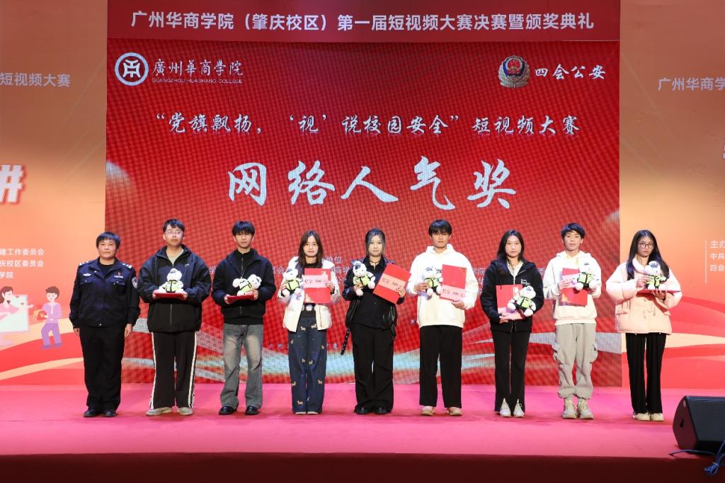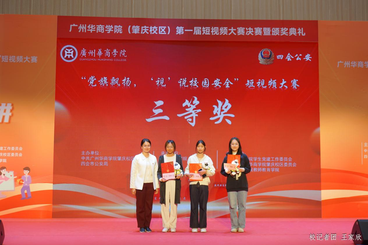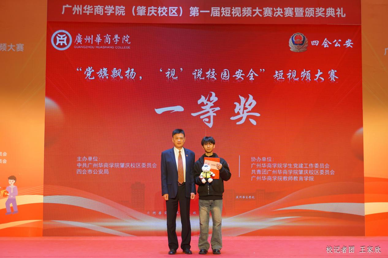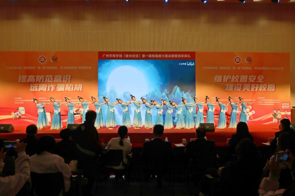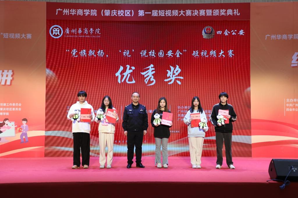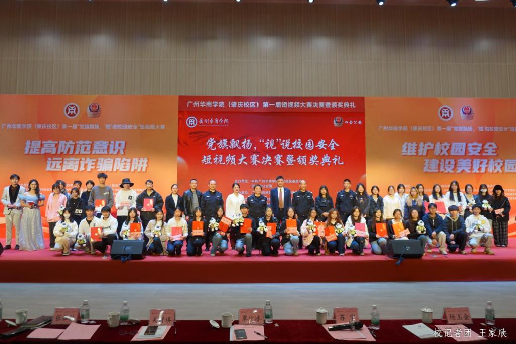 12月19日下午,威廉希尔(肇庆校区)第一届“党旗飘扬‘视’说校园安全”短视频大赛决赛暨颁奖典礼在1号楼报告厅圆满落下帷幕。威廉希尔肇庆校区党委书记苏宁,党委副书记、管委会常务副主任覃少冰,四会市公安局党委委员、政工室主任杨玉金,四会市禁毒办副主任、禁毒大队教导员吴舒琪,四会市公安局新江派出所副所长张祖柱及相关单位代表出席了本次活动。