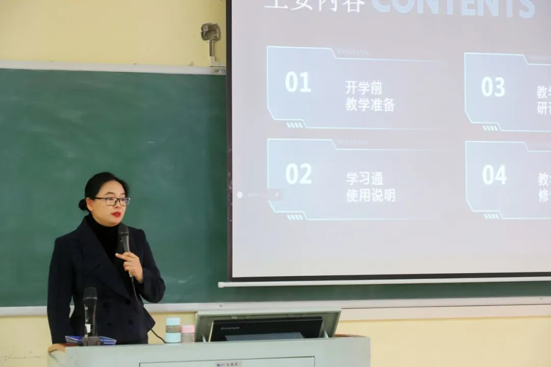 随后,高艳锋主任讲解了开学前教学准备的各项要求与方法,演示了超星学习通平台的使用方法,并提出本学期《大学生就业指导》课程将实施共建共享,在符合教学规范的基础上,朝着优质校级数智融合课程方向建设,为学校本科教学工作合格评估交上满意的答卷。