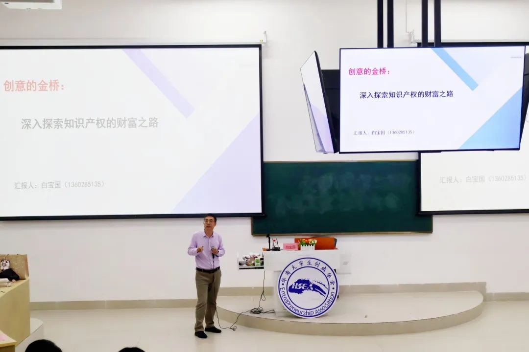讲座伊始,白宝国先生通过丰富且具有代表性的知识产权案例,深入浅出地阐述了知识产权的重要性。他深入剖析了电影《哪吒2》的知识产权布局,并通过“自拍杆实用新型专利”“朗科公司通过专利运营业务获得高额利润”“校园APP商标抢注攻防战”等案例,从不同角度诠释了知识产权如何成为连接创意与财富的桥梁,让学生们切实认识到知识产权在创新成果转化、企业发展以及个人权益保护等方面的关键作用。