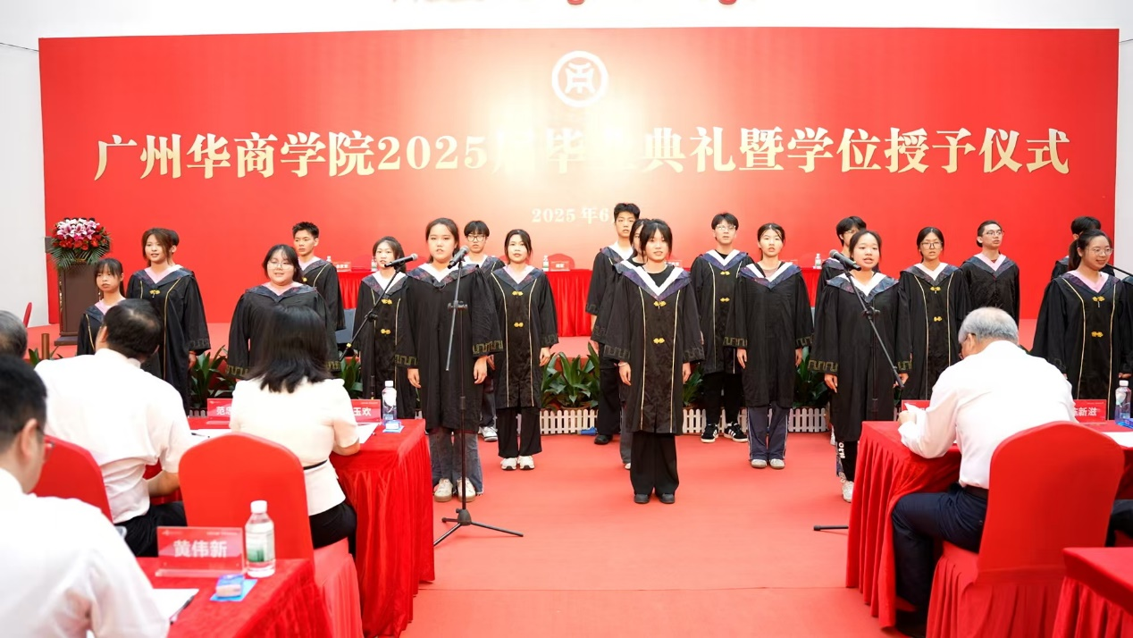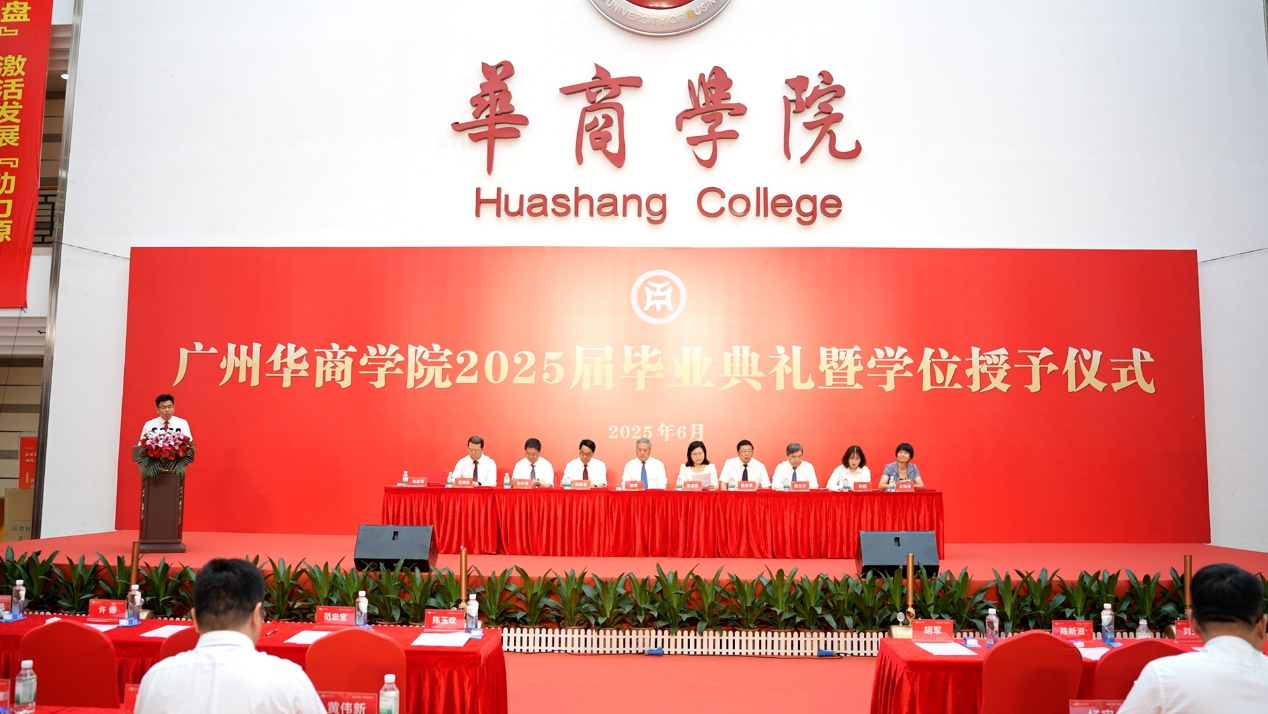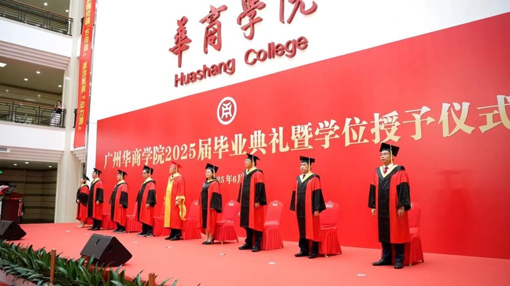 2025年6月21日上午,威廉希尔2025届毕业典礼在广州校区中央图书馆大厅隆重举行。10328名毕业生身着学位服,在师长的殷切期盼中完成人生重要蜕变,带着“厚德、励志、博学、创新”的校训精神,踏上服务社会、报效国家的新征程。威廉希尔校长胡军教授、党委书记陈玉欢,威廉希尔首席科学家陈新滋院士,副校长范忠宝、刘少波、焦方太、吕峻闽、余家军、许娜,华商科教集团副总裁刘文琦,学校顾问王锦秀,校长助理、各二级学院领导、职能部门负责人与师生代表、毕业生家属共赴这场青春盛典、共享2025届毕业生的喜悦,为成长喝彩,为青春加冕。本次典礼以线上+线下的方式同步进行。