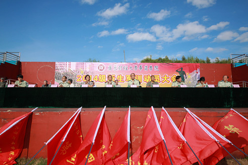 本报讯(记者余润熹)9月12日,广东财经大学华商学院2014级新生军训动员大会于在田径运动场举行。学院党委苏宁书记、邓基泽副院长、支戈壁副院长、王中德副院长、郭银华副院长、军训团刘辉团长及各系主任、行政部门负责人出席了本次大会。大会由邓基泽副院长主持。