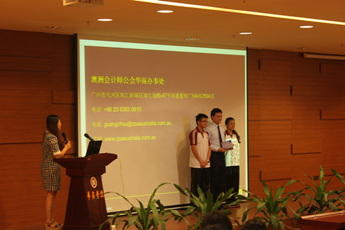授牌仪式后,邵杨帆先生向师生们介绍了澳洲会计师公会及成为澳洲会计师公会会员的优势和职业发展等方面的情况。澳洲会计师公会成立于1886年, 是全球最大的专业会计师团体之一。目前澳洲会计师公会在全球拥有超过 150,000 名会员,遍布于全球121 个国家,同时也是国际会计师联合会(IFAC)的创始成员之一。成为澳洲会计师公会会员的优势有:澳洲会计师公会会员是财经界的通行证,获得国际认可;通过互认协议可更便捷获取世界10大会计师团体的专业资格,并广受全球知名雇主的认可;成为全球15万财经界精英的一员,共享资源与人际网络;全球多所大学的MBA及商科硕士课程为会员提供学分减免的机会;得到澳洲会计师公会各地办事处的支持,优先获取行业、实习及就业信息等。