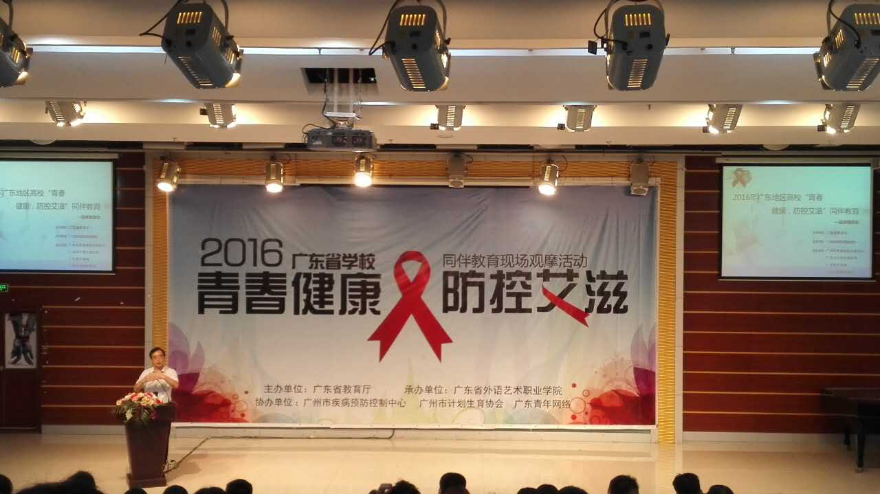 2016年9月26日,学院团委委员王桂华同志率领我院红十字会学生分会代表参加由广东省教育厅主办、广东省外语艺术职业学院承办的“青春健康,防控艾滋”同伴教育现场观摩活动。莅临本次交流会的有来自广州市疾病预防控制中心、广州市计划生育协会、广州市健康教育所的多位领导和专家。