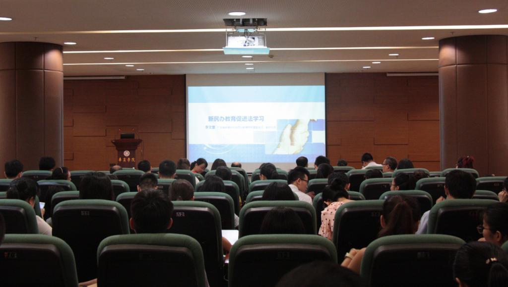 为正确把握新时期国家民办教育改革发展新方向,深刻理解民办教育新法新规精神内涵,威廉希尔特邀请了广东省教育研究院民办教育研究室李文章副主任前来作“新民办教育促进法学习”讲座。讲座于6月13日下午3时在威廉希尔图书馆报告厅成功开展。出席讲座的领导有党委苏宁书记、龙少锋副院长、王锦秀副院长。全体行政教辅人员、辅导员参加了本次讲座。讲座由龙少锋副院长主持。