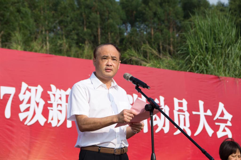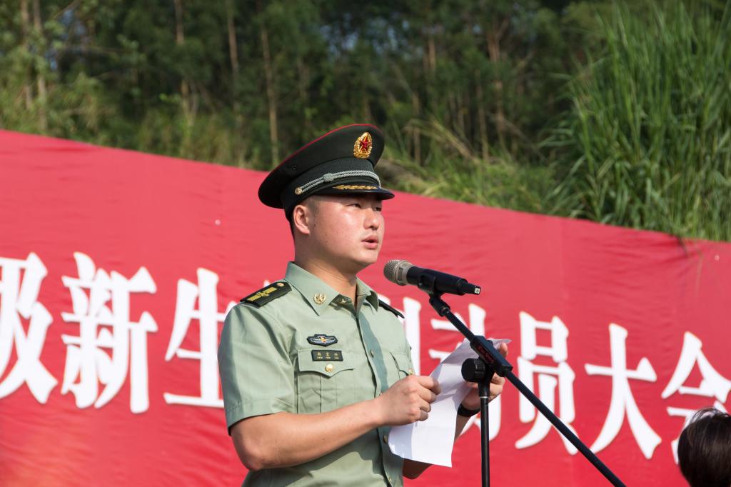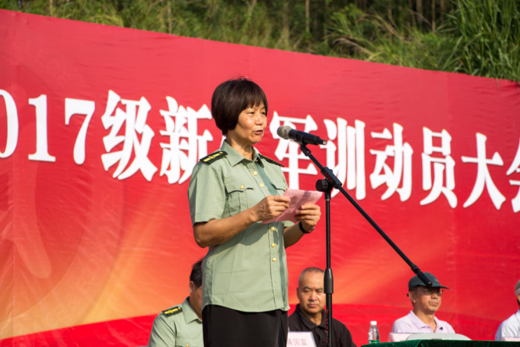军训团政委、学院党委苏宁书记上台致辞,首先,他向指导新生军训工作的首长和教官表示衷心的感谢和崇高的敬意,并向2017级新生表示亲切的慰问。他在致辞中表示,军训是大学生活的第一课,却非普通的一课。新生们穿上军装,不仅是对自身身体的考验,更能培养新生们无私奉献,积极进取的高尚品德,从而提高组织性和纪律性,为将来建设祖国和保卫祖国打下坚实的基础。为了更好地达到军训的目标,苏宁同志提出几点要求:1.高度重视,积极投入。军训能使新生更快地适应大学生活养艰苦奋斗的作风,为日后的学习和生活提供强大的动力。因此不仅要在思想上高度重视军训的要求,也要在行动上积极投入。第二,服从命令,团结精神。务必以军人的姿态来塑造自己,一切行动听指挥,严格遵守军训纪律和作息时间,在军训中做到团结协作,坚决杜绝自由怠慢。第三,不畏困难,顽强拼搏。新生们必须全身投入,争分夺秒,用自己辛勤的汗水奏响大学生活的第一曲,以高昂的斗志和饱满的热情投入到军训中去,把军训所学到的优良品德和作风带到今后的学习和生活,以优异的成绩向学院以及家长交出一份满意的答卷。