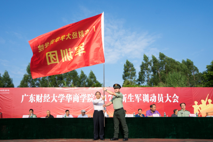 9月13日8点整,广东财经大学华商学院2017级新生军训动员大会在田径运动场举行。出席本次大会的领导有广东财经大学华商学院党委苏宁书记,华商学院郭银华副院长、龙少锋副院长、陈美华副院长, 军训团郑宏兴团长、叶计选总教官,各二级院系及行政单位负责人。本次大会由王锦秀副院长主持。