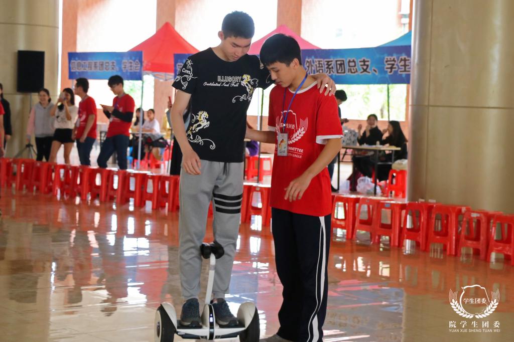 此次开幕式还增设了科技产品体验环节。科技展览凭借其奥妙无穷的生活科技产品,勾勒出现代生活智能化的图景,使学生亲身感受科技改变生活的时代新变化。大饱眼福后更有平衡车体验区,平衡车灵活便捷易操作,让在场体验的同学近距离感受先进科技的魅力。