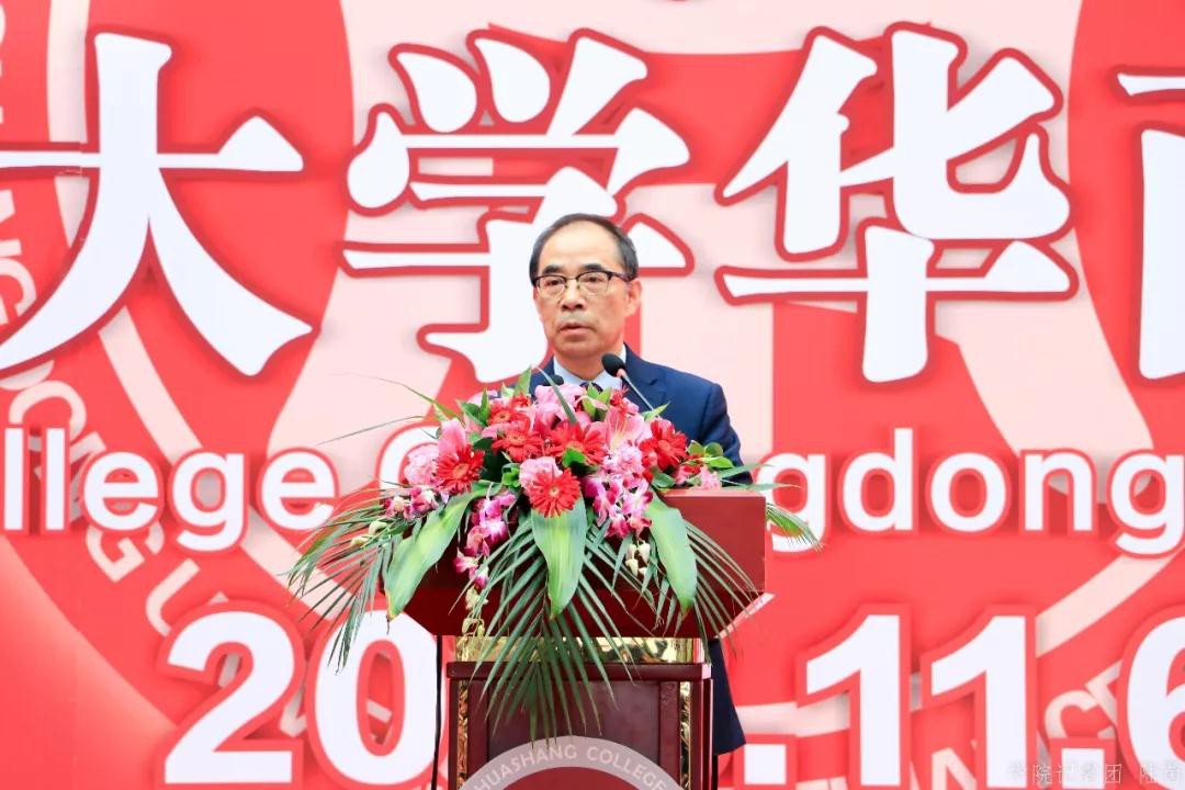 陈新滋校长在致辞谈到,华商学院在廖榕就董事长的领导下,创造了一个很有发展前途的教育平台。孟子说:君子有三乐。父母俱存、兄弟无敌,一乐也;仰不愧于天、俯不怍于人,二乐也;得天下英才而教育之,三乐也。教书育人是非常快乐的一件事,也是特别荣幸的一件事,在教授年轻人的同时,亦能从年轻人身上学到很多东西。陈校长指出,华商学院有自己的办学特色,培养的是实实在在做好每一份岗位工作的学生,华商学子毕业之后都能成为各行各业独当一面的人才。他认为,年轻人拥有更多新的想法,他希望每周三定期能与师生共进午餐,多听听师生们的意见,共同讨论华商学院的发展,多接受新的理念。希望今后在华商学院,有更多的机会向老师们学习,向学生学习。