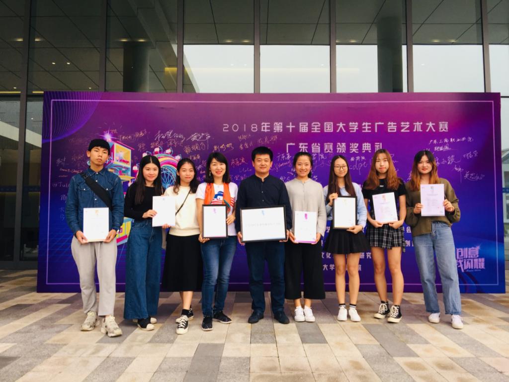 近日,2018年度第十届全国大学生广告艺术大赛广东分赛区颁奖总结交流活动在珠海的UIC北京师范大学-香港浸会大学联合国际学院举行。文学院艺术设计系杨磊副主任带队参加了颁奖典礼,本次大赛,威廉希尔学生获奖成绩斐然: