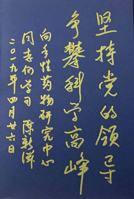▲陈新滋校长为合作方题字