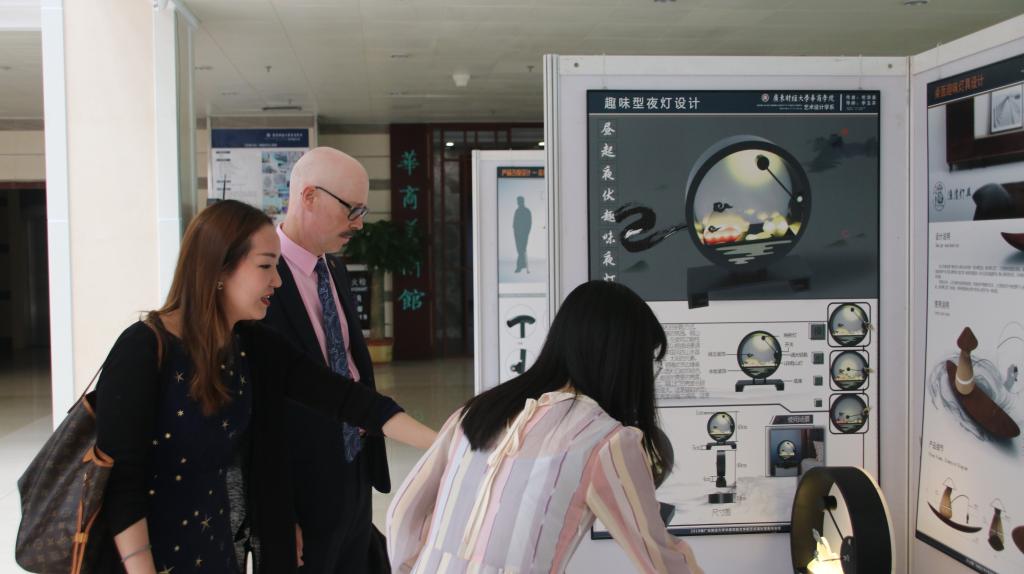 ▲Gauld教授参观本届艺术系毕业生的毕业作品展览
