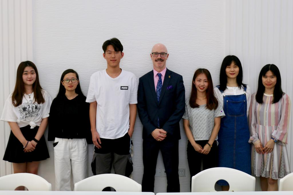 谈话结束Gauld教授与大家合影留念,他对同学们的未来发展表示祝福,并期待下次的见面。