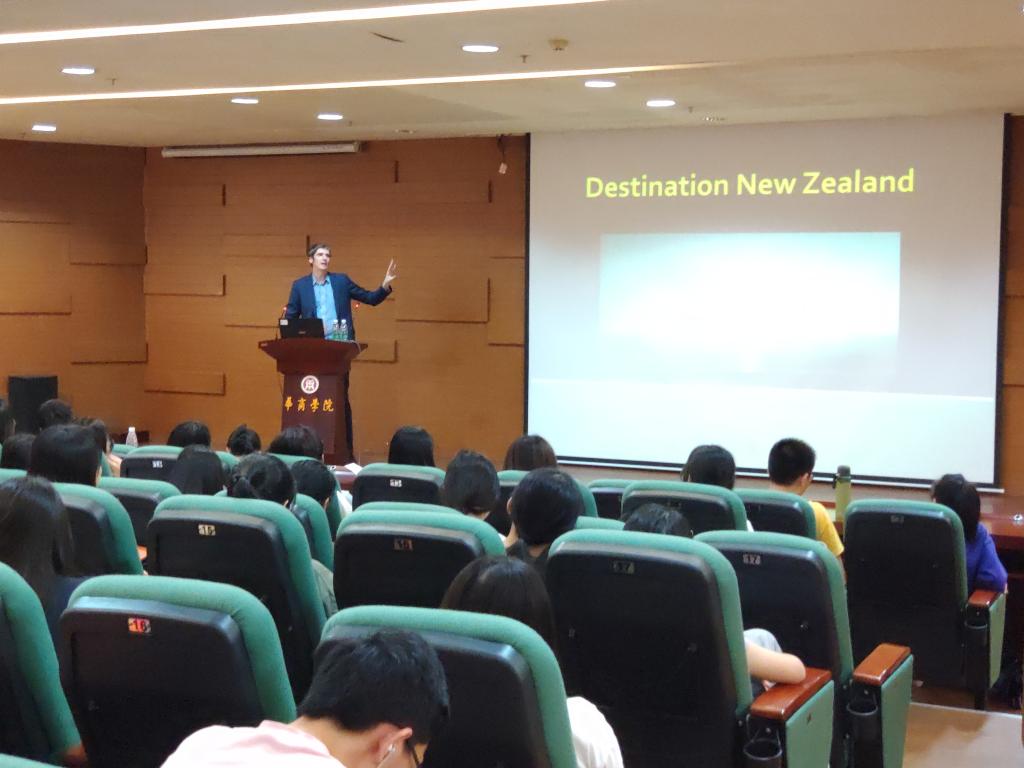 下午,Dr. Filep在威廉希尔图书馆报告厅作了主题为“DestinationNew Zealand”(下一站,新西兰)讲座。他介绍了新西兰的旅游优势及新西兰旅游业的现状及未来发展。讲座现场气氛活跃,学生积极与教授提问和互动。