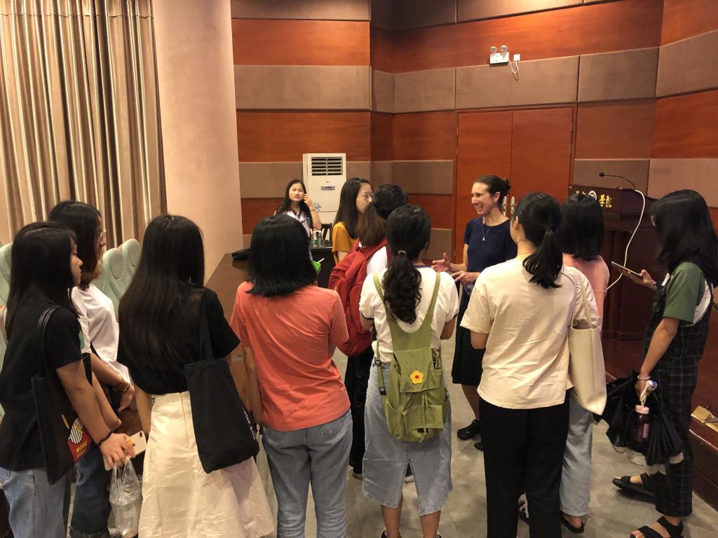 ▲Peggy Kern副教授为学生介绍正面心理教育
