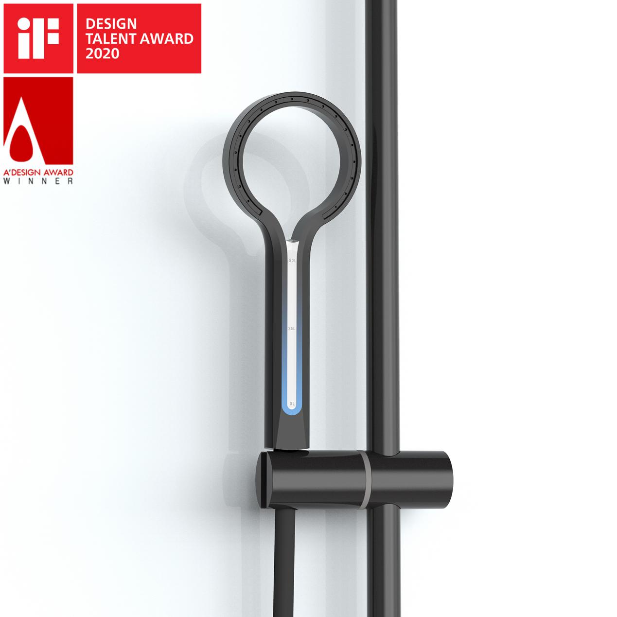 这个灵感是李同学在洗澡时想到的,他当时马上兴奋起来,想到市面上许多的节水花洒都是从花洒本身能够节水出发,他设想如果从培养人们的意识出发会不会有不同的效果,他希望让人们意识到每次洗澡的耗水量,当人们每次洗澡都看到自己原来洗澡的时候浪费了如此多的水是不是也会让人们适当的减少洗澡时间呢。李同学在一开始的方案基础上继续修改,然后参加了意大利A'DESIGN,最终也取得不错成绩。