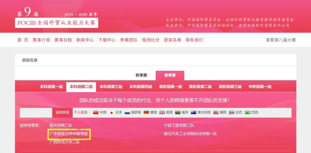 2020年6月18日上午10时,第九届POCIB全国大学生外贸从业能力大赛(春季赛)落下帷幕。本次大赛历时15天,参与角逐的2550名选手分别来自全国的131所院校。威廉希尔经济与金融系国际经济与贸易学专业张小玲、岑眉、卢博欢、朱芳仪、张婉仪、陈恩婷、李琪芸、刘琼穗、陈洁玲、廖思婷10名参赛选手在黄丽霞、张文杰两位指导老师带领下,凭借200笔进出口业务,2518封邮件,累计1811小时在线时长,与竞争对手的PK中过关斩将,以团队第三的历史新排名,喜提团体特等奖,并收获个人一等奖2个、二等奖4个、三等奖4个。(个人奖项设置率为40%)