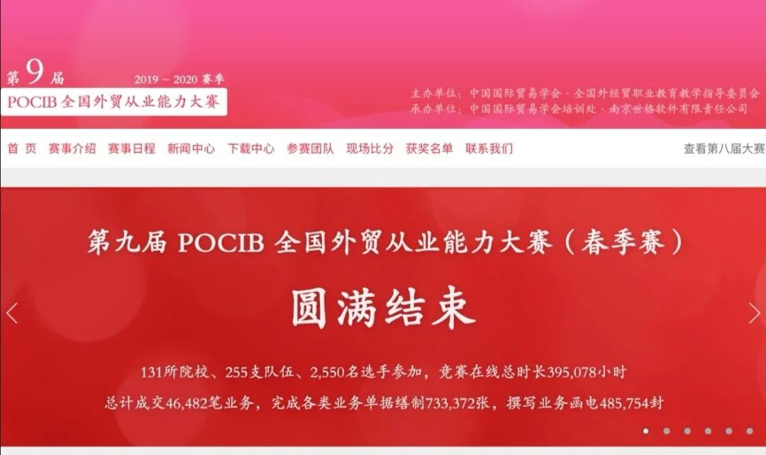 本次大赛由中国国际贸易学会、全国外经贸职业教育教学指导委员会主办,中国国际贸易学会培训处、南京世格软件有限责任公司承办。比赛全面系统考察学生在国际贸易买卖磋商过程中的学习能力、业务能力、跟单能力和综合能力,包括对询盘、发盘、还盘和接受环节的英文函电写作能力和技巧、主要贸易术语和结算方式的细节和运用、进出口商品的价格核算、成本控制和扩大利润的方法、进出口业务履约基本技巧、主要进出口单据的缮制与运用能力等。经过八年的发展,POCIB全国外贸从业能力大赛已经成为外经贸相关专业领域参赛人数最多,最有影响力的大赛。