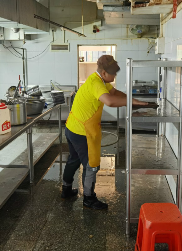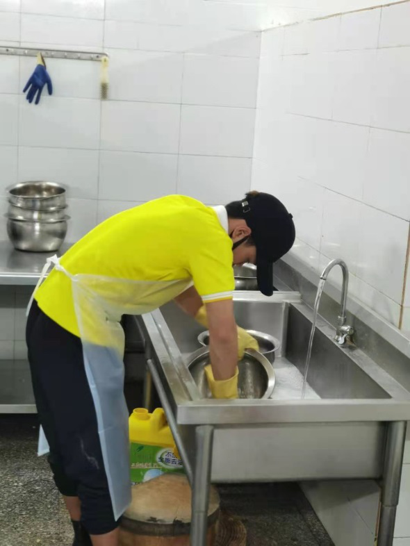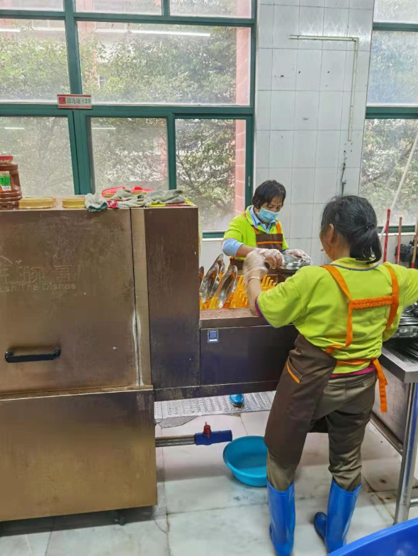 对完成保洁消毒的食堂全面检查、督查整改