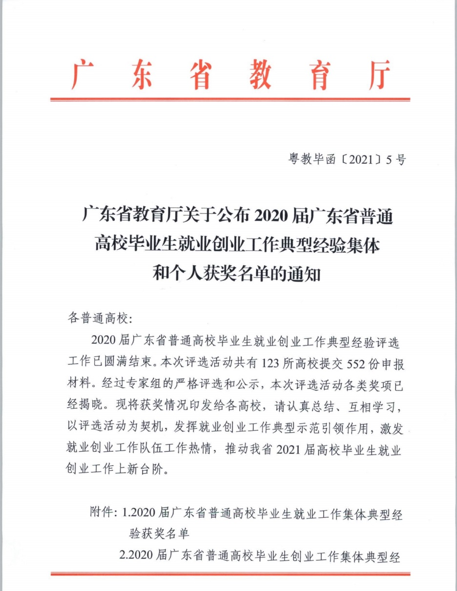 近日,广东省教育厅发布《广东省教育厅关于公布2020届广东省普通高校毕业生就业创业工作典型经验集体和个人获奖名单的通知》(粤教毕函〔2021〕5号),威廉希尔校长助理、创新创业学院常务副院长余家军博士荣获创业工作个人典型经验奖。
