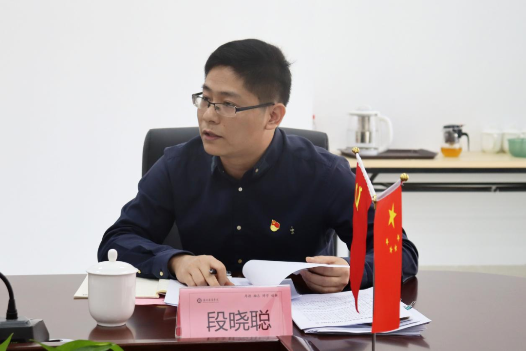 随即,四会校区直属党支部书记汇报党史学习教育开展情况。四会校区直属党支部虽设立时间不长,但在实际工作中,对标对表做好“规定动作”,创新做实“自选动作”,早谋划,高标准、严要求,有力推动党史学习教育往深里走、往实里走。支部党史学习教育形式多样、推进有序,积极与教学实践相结合,持续推进师生党史学习主体化,充分利用当地红色资源,更加生动得学党史。加强师生对党史学习的兴趣。